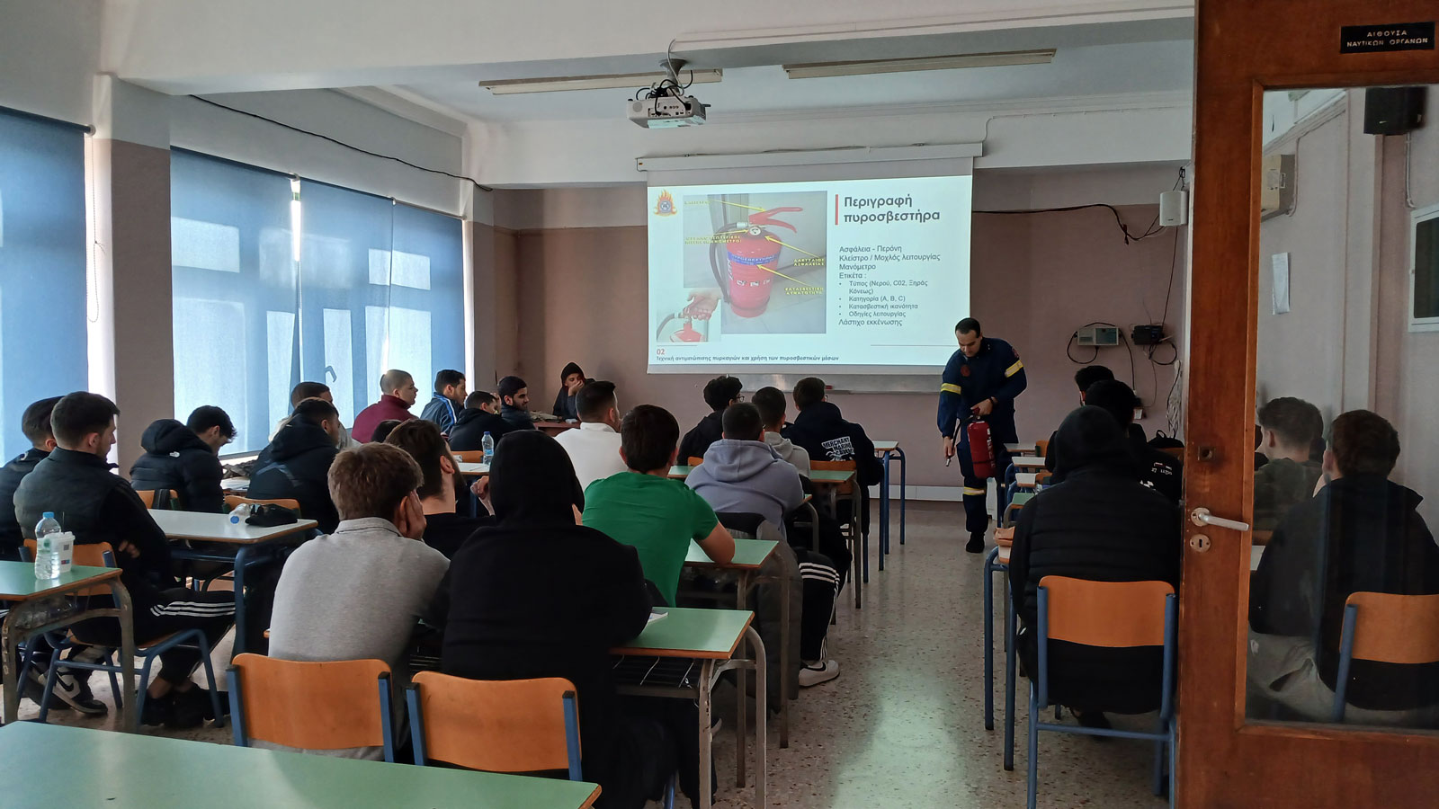 Η Διοίκηση της ΑΕΝ Σύρου ευχαριστεί θερμά την Πυροσβεστική Υπηρεσία Σύρου – Ερμούπολης για τη συνεργασία, την άρτια παρουσίαση και τη συμβολή της στην καλλιέργεια κουλτούρας πρόληψης και ασφάλειας. Τέτοιου είδους δράσεις αποτελούν βασικό πυλώνα για τη διασφάλιση της προστασίας της ακαδημαϊκής κοινότητας και την ενίσχυση της επιχειρησιακής ετοιμότητας της Σχολής.
