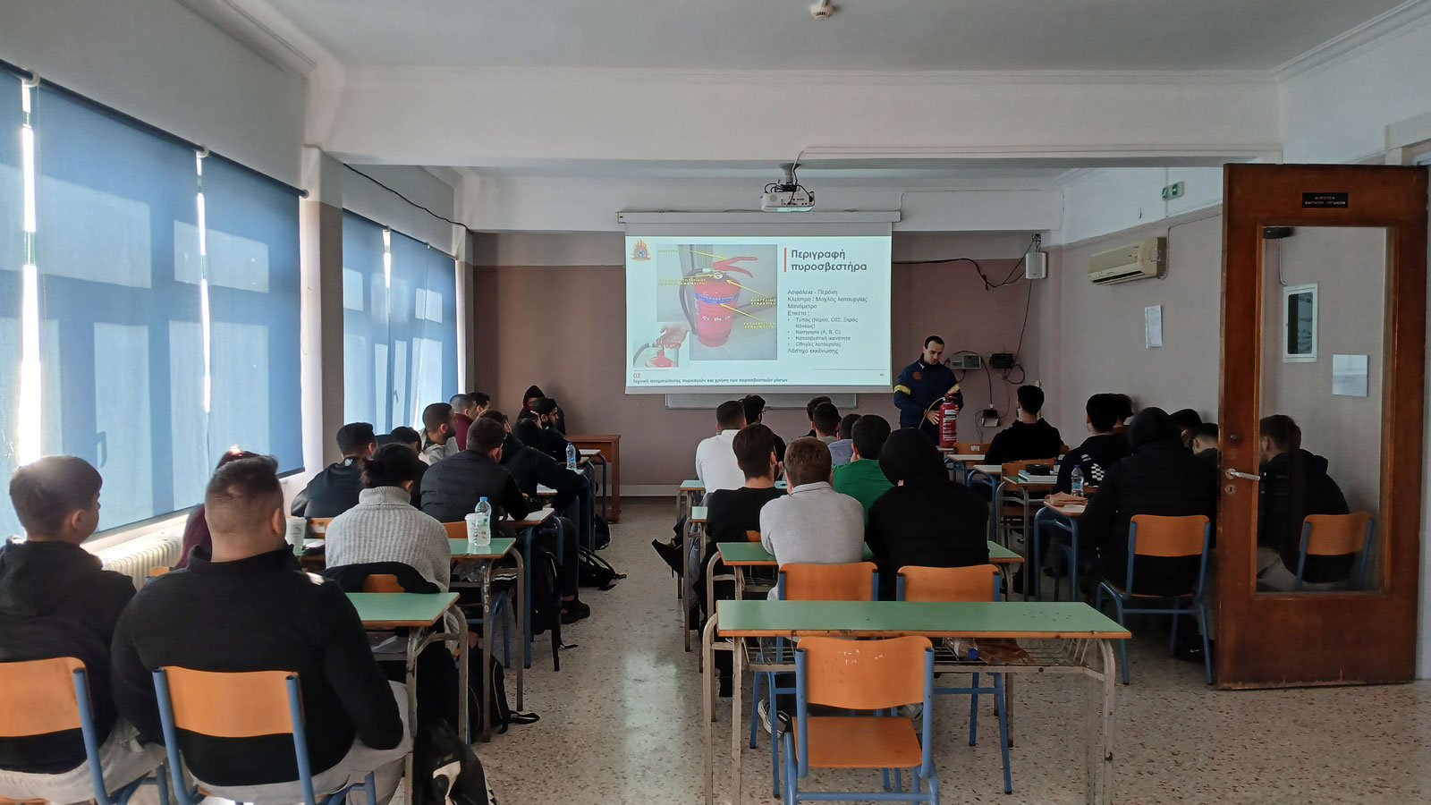 Τα στελέχη της Πυροσβεστικής Υπηρεσίας παρείχαν αναλυτική ενημέρωση τόσο σε θεωρητικό όσο και σε πρακτικό επίπεδο, καλύπτοντας βασικές αρχές πρόληψης πυρκαγιών, σωστές πρακτικές αντίδρασης σε περίπτωση εκδήλωσης συμβάντος, καθώς και τις ενέργειες που οφείλουν να ακολουθούν σπουδαστές και προσωπικό για την ασφαλή εκκένωση των εγκαταστάσεων. Ιδιαίτερη έμφαση δόθηκε στη σημασία της ψυχραιμίας, της έγκαιρης ειδοποίησης των αρμόδιων αρχών και της τήρησης των προβλεπόμενων διαδικασιών.